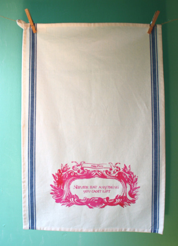 This morning, I went to wipe my hands on a tea towel, and while I was using it, it seemed like it felt a bit light. I unfolded it and realized my daughter had cut little bits out of it to make frocks for her dolls!