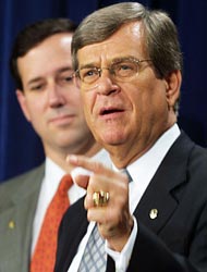 Chester Trent Lott, Sr. is an American politician. A former United States Senator from Mississippi, Lott served in numerous leadership positions in both the United States House of Representatives and the Senate. He entered Congress as one of the first of a wave of Republicans winning seats in Southern states that had been solidly Democratic. He became Senate Majority Leader, then fell from power after praising Strom Thurmond's 1948 segregationist Dixiecrat presidential bid... (wikipedia)