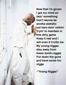 Tupac Amaru Shakur, also known by his stage names 2Pac and Makaveli, was an American rapper, songwriter, and actor. Shakur has sold over 75 million records worldwide, making him one of the best-selling music artists of all time. His double disc albums All Eyez on Me and his Greatest Hits are among the best selling albums in the United States. He has been listed and ranked as one of the greatest artists of all time by many magazines, including Rolling Stone which ranked him 86th on its list of The 100 Greatest Artists of All Time. Consistently ranked as one of the greatest rappers ever, he was ranked number 2 by MTV in their list of The Greatest MCs of All-Time in 2006. 2Pac is also ranked as the most influential rapper of all time... (wikipedia)