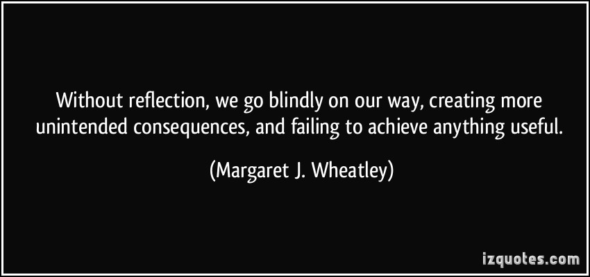 Without reflection, we go blindly on our way, creating more unintended consequences, and failing to achieve anything useful.