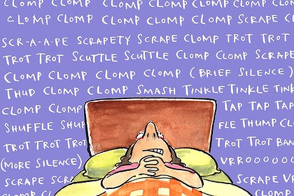 A landlord is showing a couple around an apartment. The husband looks up and says, 'Wait a minute. This apartment doesn't have a ceiling.' The landlord answers, 'That's OK. The people upstairs don't walk around that much.'