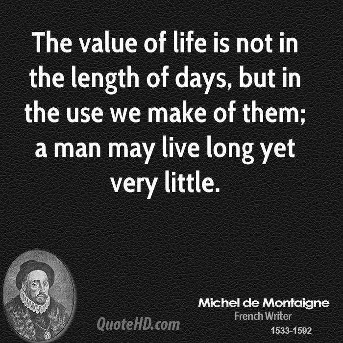 The value of life lies not in the length of days, but in the use we make of them... Whether you find satisfaction in life depends not on your tale of years, but on your will.