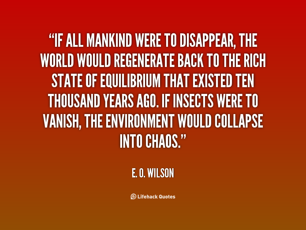 If all mankind were to disappear, the world would regenerate back to the rich state of equilibrium that existed ten thousand years ago. If insects were to vanish, the environment would collapse into chaos.