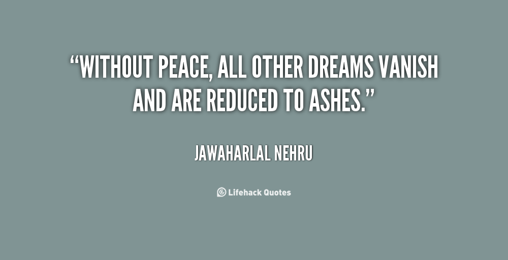 Without peace, all other dreams vanish and are reduced to ashes.