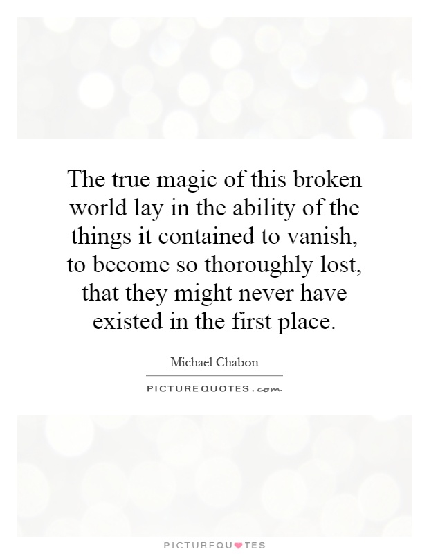 I do have a sense, and I've never not had it, of how easily things can vanish.