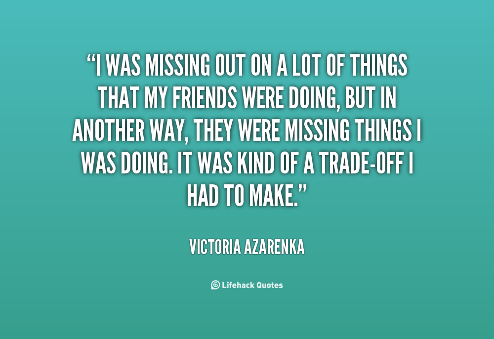 I was missing out on a lot of things that my friends were doing, but in another way, they were missing things I was doing. It was kind of a trade-off I had to make.