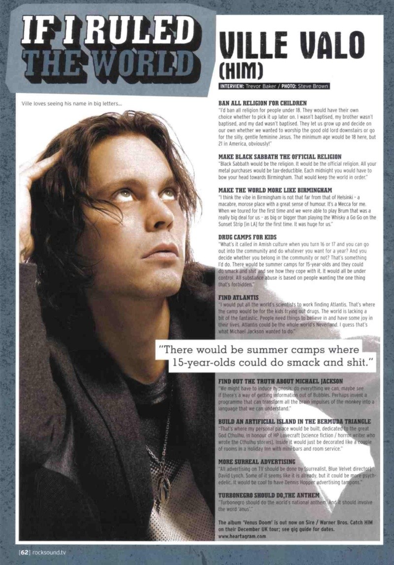 Ville Hermanni Valo is a Finnish singer, songwriter, artist, and multi instrumentalist. He is the frontman of the Finnish rock band HIM. Valo has a bass-baritone voice type and has maintained a wide vocal range throughout his career... (wikipedia)