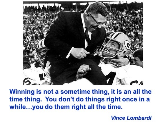Vincent Thomas "Vince" Lombardi, was an American football player, coach, and executive. He is best known as the head coach of the Green Bay Packers during the 1960s, where he led the team to three straight and five total National Football League championships in seven years, in addition to winning the first two Super Bowls following the 1966 and 1967 NFL seasons. Lombardi is considered by many to be one of the best and most successful coaches in Professional Football history. The National Football League's Super Bowl trophy is named in his honor. He was enshrined in the Pro Football Hall of Fame in 1971... (wikipedia)