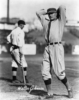 Walter Perry Johnson, nicknamed "Barney" and "The Big Train", was a Major League Baseball right-handed pitcher. He played his entire 21-year baseball career for the Washington Senators. He later served as manager of the Senators from 1929 through 1932 and for the Cleveland Indians from 1933 through 1935... (wikipedia)