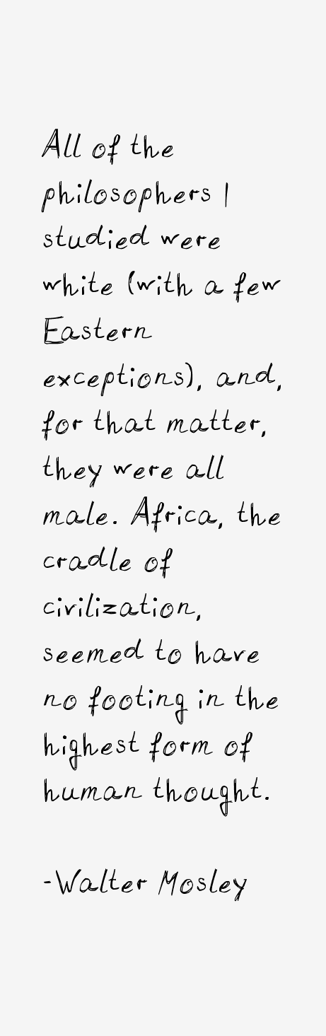 Walter Ellis Mosley is an American novelist, most widely recognized for his crime fiction. He has written a series of best-selling historical mysteries featuring the hard-boiled detective Easy Rawlins, a black private investigator and World War II veteran living in the Watts neighborhood of Los Angeles; they are perhaps his most popular works... (wikipedia)