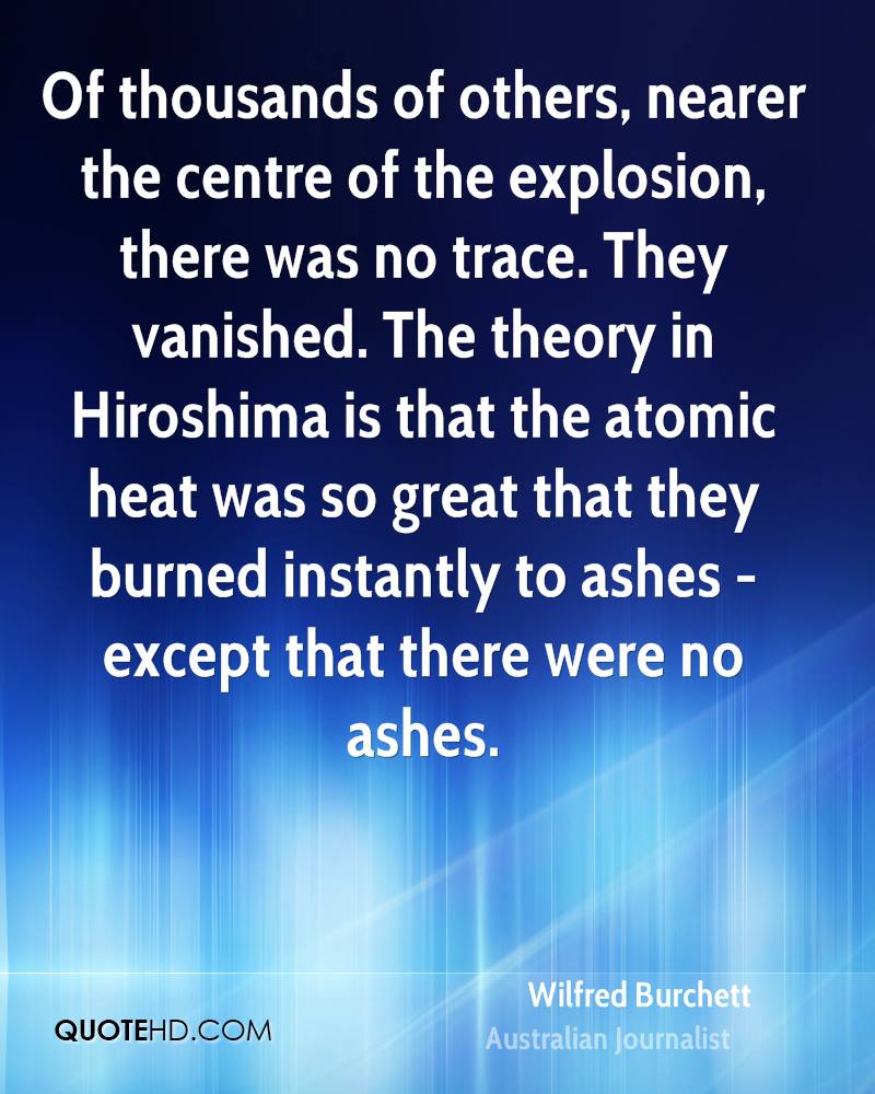 Wilfred Graham Burchett was an Australian journalist known for his reporting of conflicts in Asia and his Communist sympathies. He was the first foreign correspondent to enter Hiroshima after the atomic bomb was dropped, and he attracted controversy for his activities during the Korean and Vietnam Wars... (wikipedia)