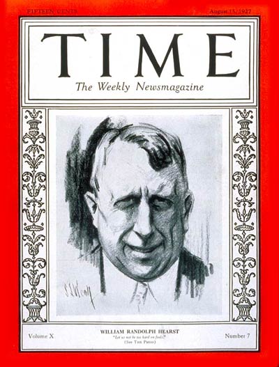 William Randolph Hearst was an American newspaper publisher who built the nation's largest newspaper chain and whose methods profoundly influenced American journalism. Hearst entered the publishing business in 1887 after taking control of The San Francisco Examiner from his father. Moving to New York City, he acquired The New York Journal and engaged in a bitter circulation war with Joseph Pulitzer's New York World that led to the creation of yellow journalism—sensationalized stories of dubious veracity. Acquiring more newspapers, Hearst created a chain that numbered nearly 30 papers in major American cities at its peak. He later expanded to magazines, creating the largest newspaper and magazine business in the world... (wikipedia)