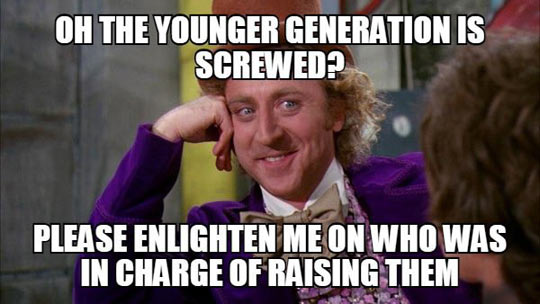 I think these days a lot of the younger generation feels that the world owes them something. But you've got to get off your backside and you've got to do all the crap stuff, too.