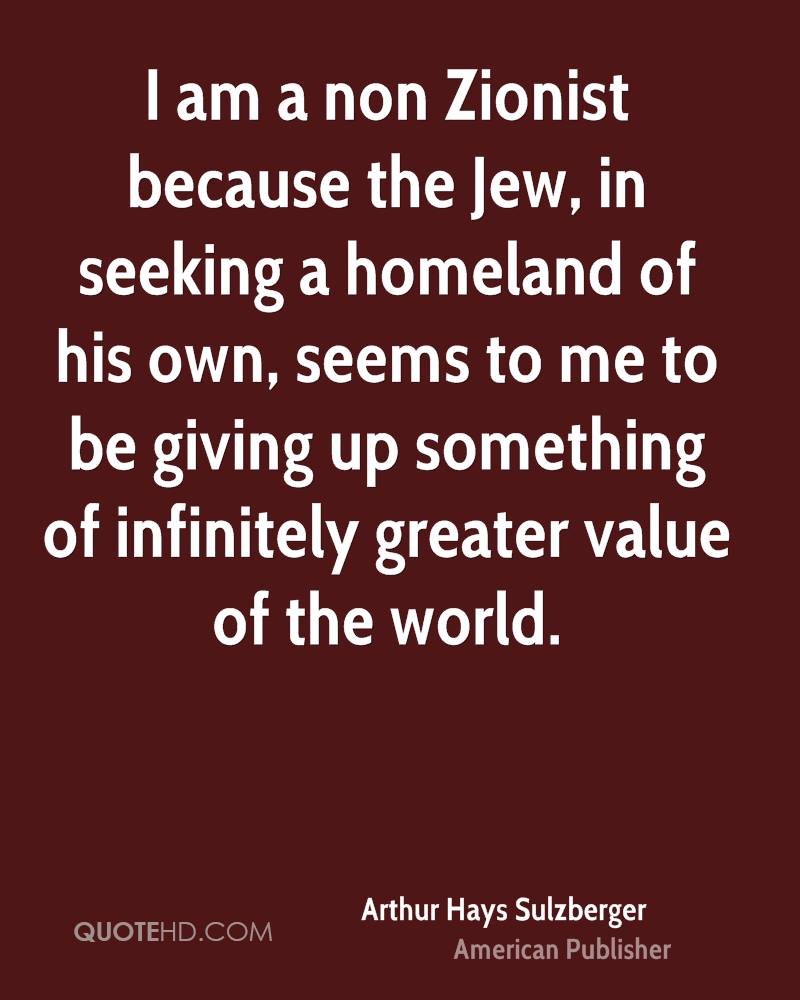 I am a non Zionist because the Jew, in seeking a homeland of his own, seems to me to be giving up something of infinitely greater value of the world.