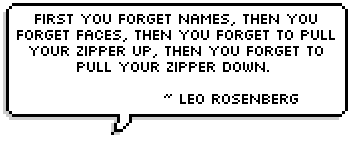 First you forget names, then you forget faces. Next you forget to pull your zipper up and finally, you forget to pull it down.